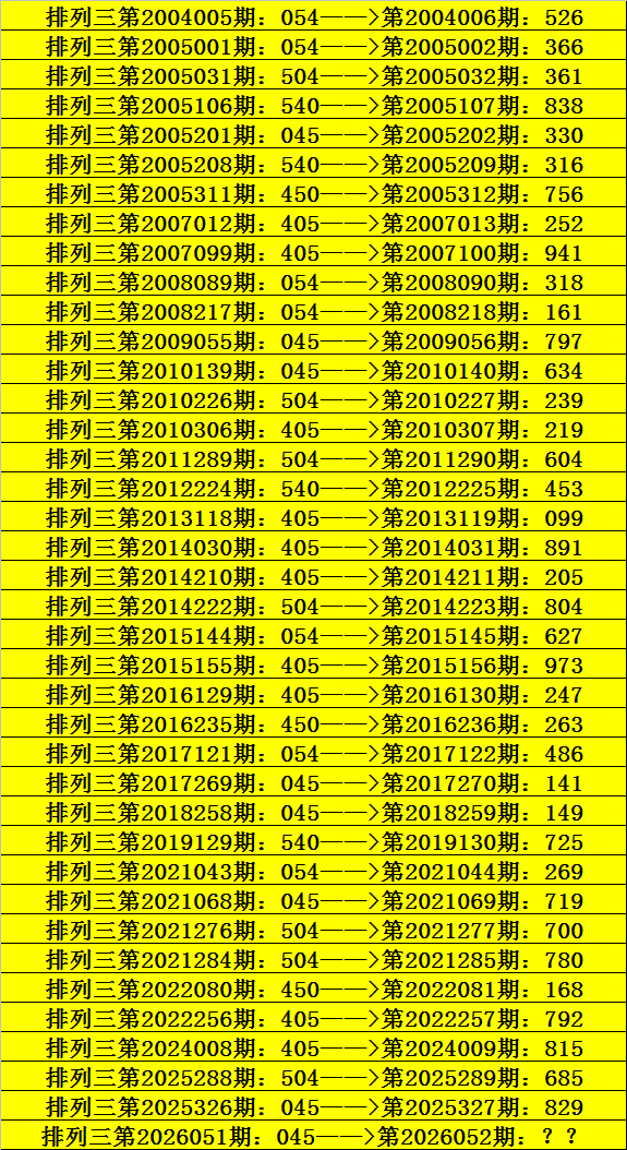 第2026051期摆设三奖号为045,历史上该号码组选开出39次,下期奖号辞别为:526、366、361、838、330、316、756、252、941、318、161、797、634、239、219、604、453、099、891、205、804、627、973、247、263、486、141、149、725、269、719、700、780、168、792、815、685、829。