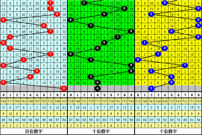百位:大小比为4:3,奇偶比为5:2,本期参考号码9。