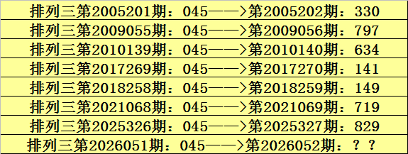 第2026051期摆设三奖号为045,金沙电玩app历史上该号码直选出现8次,下期奖号辞别为:330、797、634、141、149、719、829。
