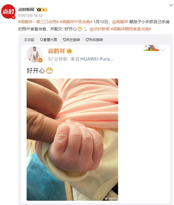更让人惊喜的是,阎鹤祥在社交平台官宣当爸爸的喜讯。 配文简单却满是幸福,网友纷纷留言恭喜壮壮。 当下的阎鹤祥,堪称事业顺遂、爱情美满,二者皆有所获。