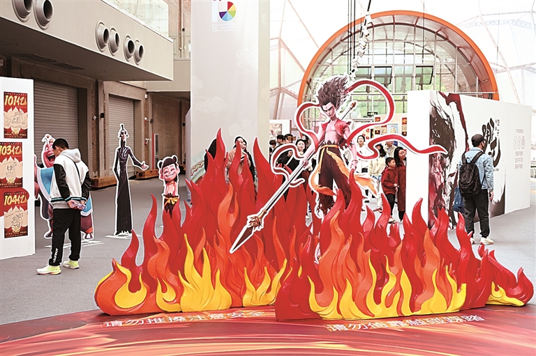 《哪吒之魔童闹海》破亿手绘海报展 新华社发