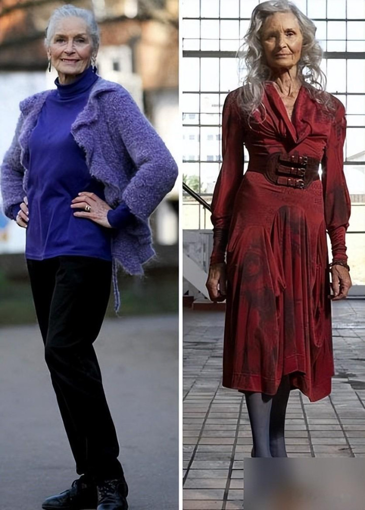 衣服的剪裁和人的姿态,像一对老搭档,互相成就。 穿得板正了,背也挺直了,那份优雅从骨子里透出来,比年轻时的张扬更有味道。