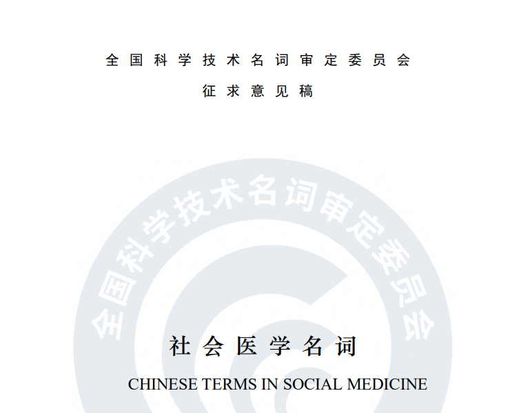 社会医学名词经寰宇寰球卫生与防太医学名词阻塞委员会社会医学名词阻塞分委员会阻塞,寰宇科学时刻名词阻塞委员会审核,自2026年2月6日起,通过寰宇科学时刻名词阻塞委员会网站(www.cnterm.cn),面向全社会公开征求观念,期限3个月。