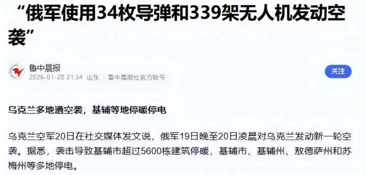 要知道,零下14度的寒冬,断电就意味着断暖。这次空袭直接导致基辅市超过5600栋建筑停暖,基辅州、敖德萨州等多地陷入停电困境。对乌军来说,前线作战需要稳定的能源供应,后方民生更是维持士气的关键;而对俄军而言,通过打击能源设施制造民生危机,既能消耗乌军的后勤保障能力,又能向乌克兰民众传递施压信号,迫使泽连斯基政府在谈判桌上让步。 更重要的是,锆石导弹的实战亮相,也是俄军在向西方秀肌肉——这款最大飞行速度达9马赫、射程超1000公里的高超音速武器,目前西方的防空系统根本难以拦截,俄军就是要通过这种方式,警告西方不要过度介入俄乌冲突。