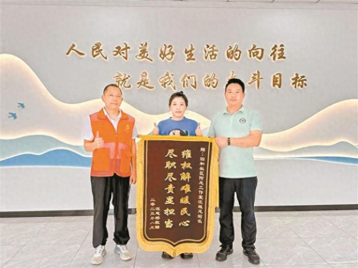 福城综治中心阿龙工作室收到居民赠送的锦旗。 阳台叠翠、观澜扬波,一幅良法善治的壮美画卷,正在龙华大地从容运笔、恢弘铺展。 近年来,龙华区扎实推进综治中心规范化建设,完成“从点到面”的系统布局,迈入“从有到优”的提质增效新阶段,扎根基层、服务群众,用实干守护一方安宁。这一生动实践,正是新时代“枫桥经验”在基层落地生根、枝繁叶茂的鲜活写照。 数据显示:2025年,龙华区按照“3区+N室”功能布局,实现“1+6+69”三级综治中心规范化运行,平台累计排查受理各类矛盾纠纷6.83万宗,办结6.69万宗,办结率达98%;提供法律咨询5.82万人次,受理调解案件1.27万宗,开展普法宣传1327场,社区法律顾问提供服务1.12万件;办理法律援助1212宗,为犯罪嫌疑人提供法律帮助2075人次,挽回群众经济损失3080.62万元。 体系化构建: 纵向贯通、横向协同,筑牢治理“桥头堡” “多亏你们一次又一次的耐心调解,不然这事儿真不知道要拖到什么时候!”去年,龙光玖誉府的梁女士将一面鲜红的锦旗,送到福城街道四和社区的“阿龙网格工作室”。原来,梁女士卖房时房屋漏水且有白蚁,因维修费和范围产生争议。龙华区综治中心收到纠纷诉求后,统筹三级平安建设资源力量,发动社会组织参与,组织双方及物业现场调解,一场历时数月的房屋纠纷圆满化解。 龙华区将综治中心建设置于区域平安建设的全局中谋划,着力打破层级壁垒、部门界限,构建起上下联动、左右协同的治理网络。 纵向贯通,明晰三级定位。区级综治中心发挥“终结地”作用,整合优势资源,强化指挥协调,专攻复杂疑难矛盾;街道级综治中心筑牢“主阵地”,承担辖区内矛盾化解、隐患排査、重点人员管理等主要职责;社区级综治中心打造“前哨地”,贴近群众、靠前服务,确保苗头问题早发现、早介入、早处置。2025年,通过“民意速办”等渠道流转至街道社区的矛盾纠纷占比达69%,绝大多数纠纷在基层一线得到吸附化解,实现了“小事不出社区、大事不出街道、难事区域统筹”的层级治理效能。 横向覆盖,推动多元入驻。龙华深化“1+6+N”工作体系,推动政法、信访、人社等核心部门常驻,教育、住建等部门轮驻,工青妇等群团组织随驻。在全部街道中心实现法院、检察院、公安、司法行政力量实体进驻,推动简案速裁、检察听证、非警务纠纷跟进等职能下沉,强化诉源治理与风险预警能力。这种“一站式接收、一揽子调处、全链条解决”的模式,使综治中心真正成为聚合资源、化解矛盾的实体平台。 法治化引领: 定分止争、裁调结合,打造解纷“快车道”